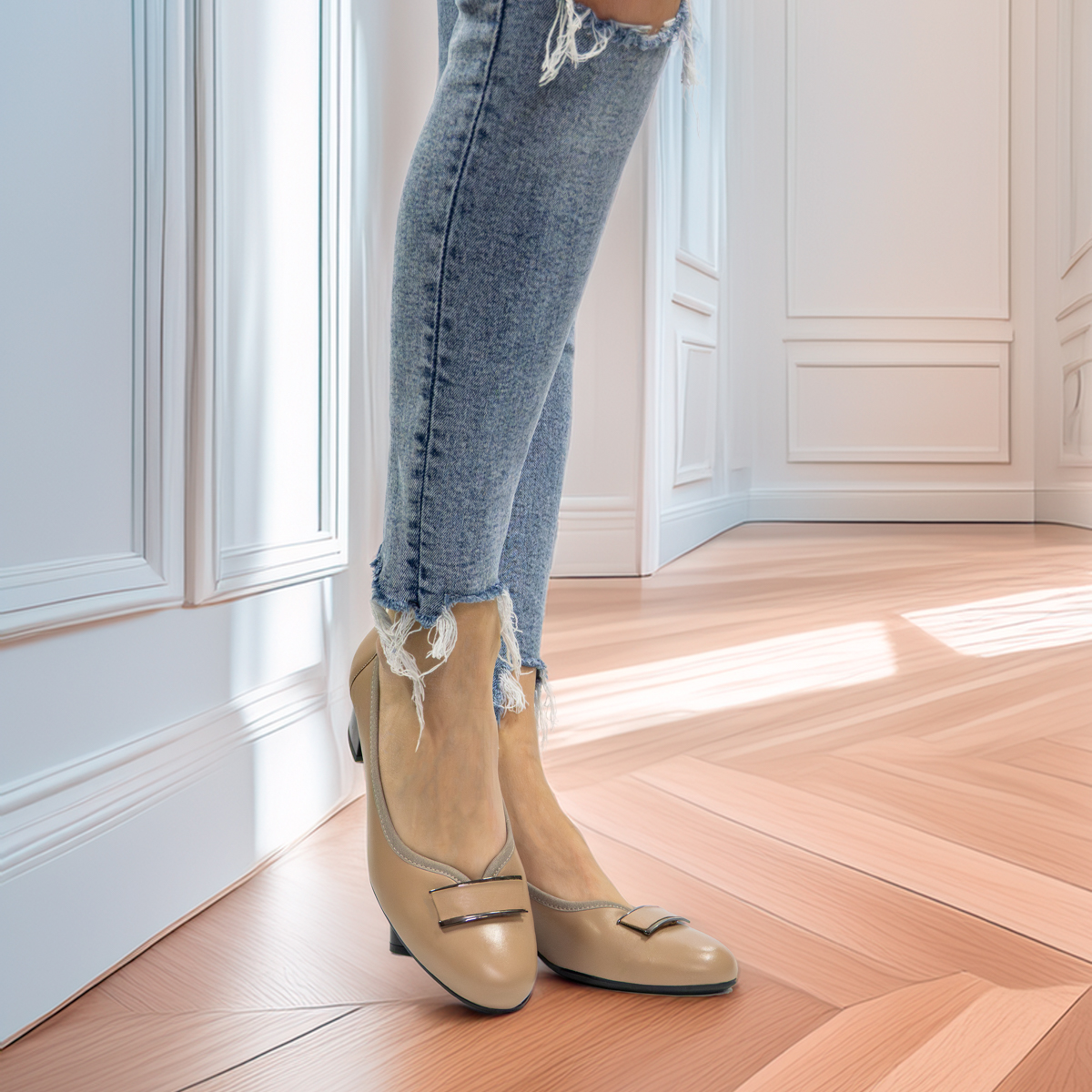 Model: Beżowe skórzane czółenka 6914 Bioeco by Arka