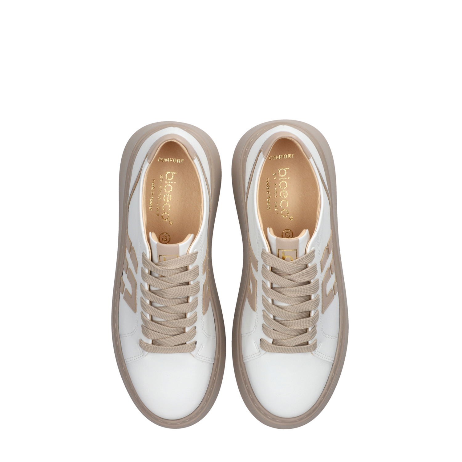 Model: Białe skórzane sneakersy z beżowymi wstawkami 1032 Bioeco by Arka