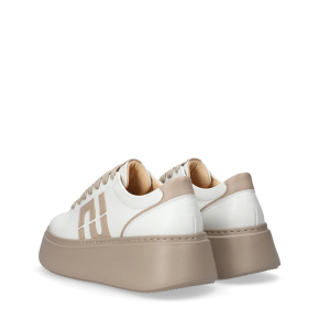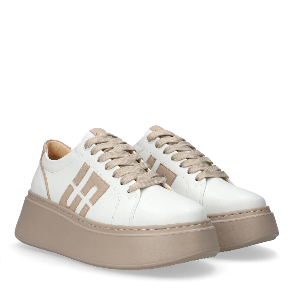 Styl i funkcjonalność: Stabilna gruba platforma, skóra licowa w kolorze biało-beżowym i nowoczesny fason, pasujący do casualowych i miejskich stylizacji.
