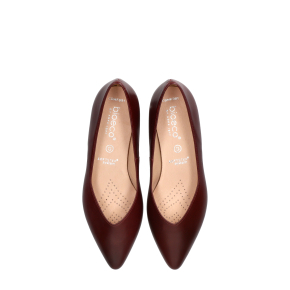 Eleganckie Baleriny – Bordowa Skóra Licowa z Nowoczesnym Obcasem