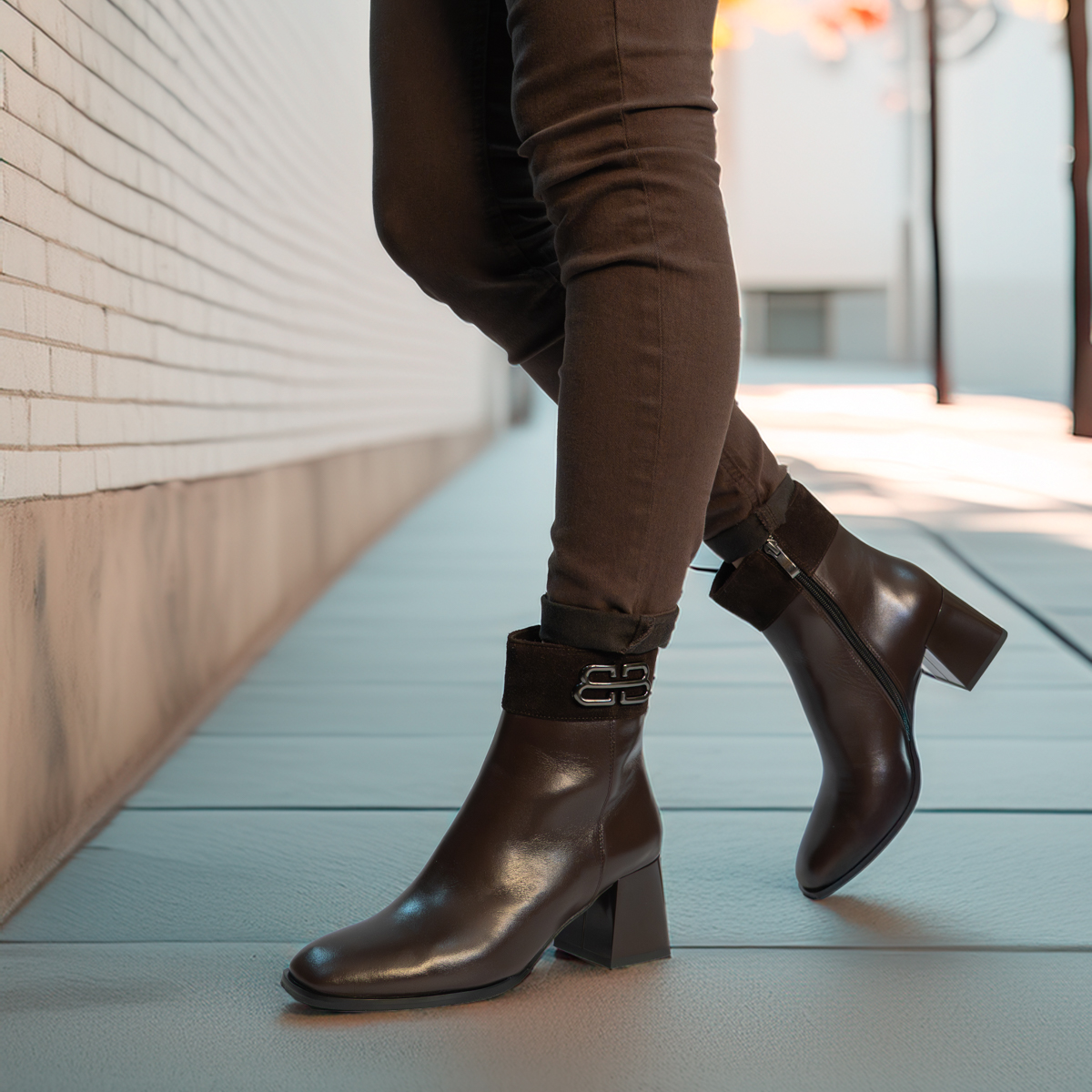 Te brązowe botki ze skóry licowej to połączenie elegancji i wygody w najlepszym wydaniu. Ich minimalistyczny design oraz subtelny połysk sprawiają, że będą doskonałym uzupełnieniem wielu stylizacji – od codziennych po bardziej formalne. Dzięki polskiej produkcji i innowacyjnemu systemowi Soft Step, zapewniają nie tylko stylowy wygląd, ale także wyjątkowy komfort noszenia przez cały dzień.