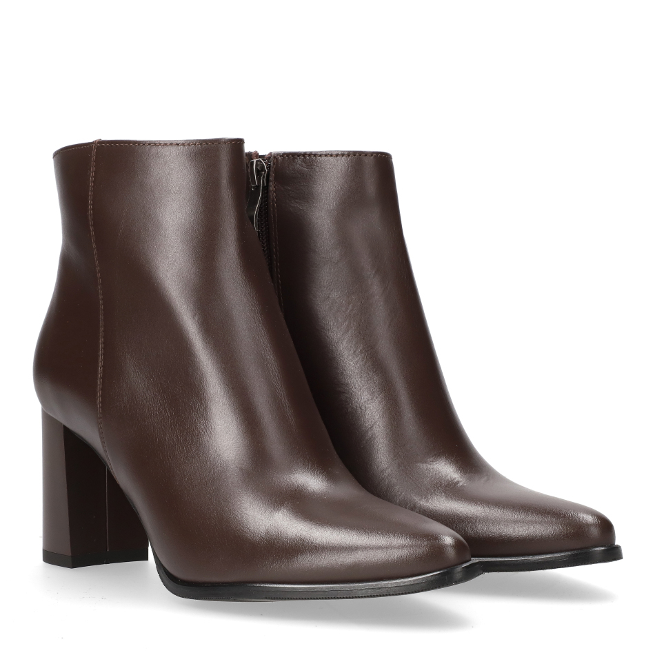 Eleganckie brązowe botki z licowej skóry – szyk, komfort i nowoczesna forma