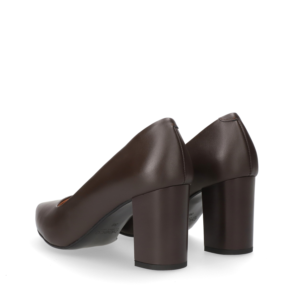 Styl i funkcjonalność: Stabilny 7.5 cm obcas typu klocek, skóra licowa w kolorze brązowym i klasyczny fason, pasujący do eleganckich i casualowych stylizacji.
