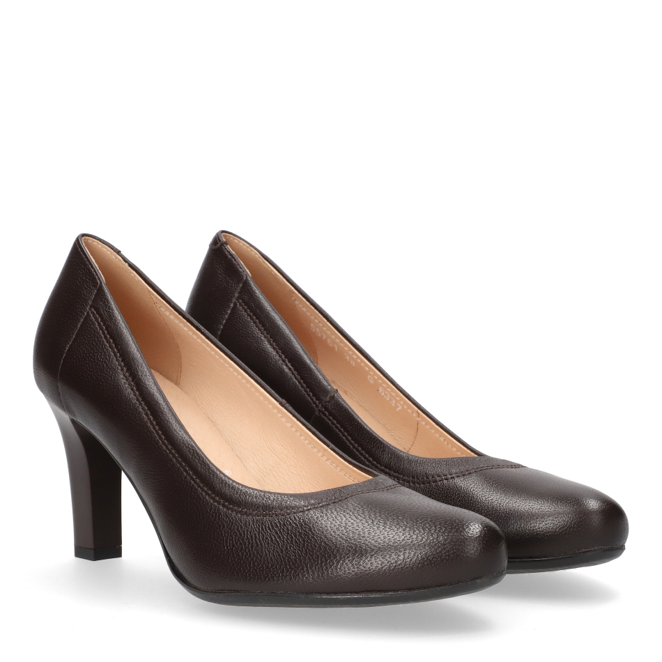 Styl i funkcjonalność: Stabilny 7 cm obcas typu słupek o klasycznym kroju, skóra licowa w kolorze brązowym i klasyczny fason, pasujący do eleganckich i casualowych stylizacji.