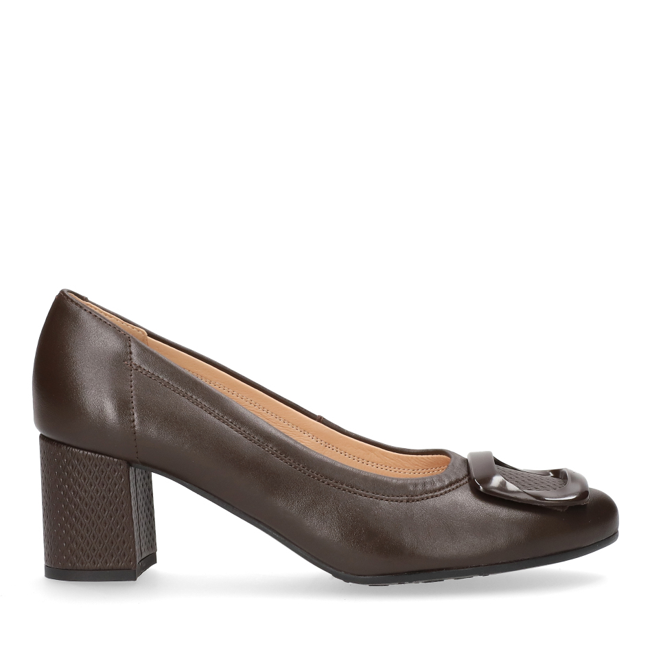 Odkryj brązowe, licowe czółenka na modnym klocku, które łączą klasyczną elegancję z nowoczesnymi rozwiązaniami, zapewniając wyjątkowy komfort. Dzięki polskiej produkcji, wysokiej jakości materiałom i innowacyjnemu systemowi Soft Step, to obuwie idealne do pracy i na specjalne okazje.
