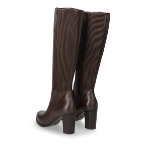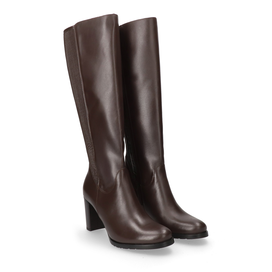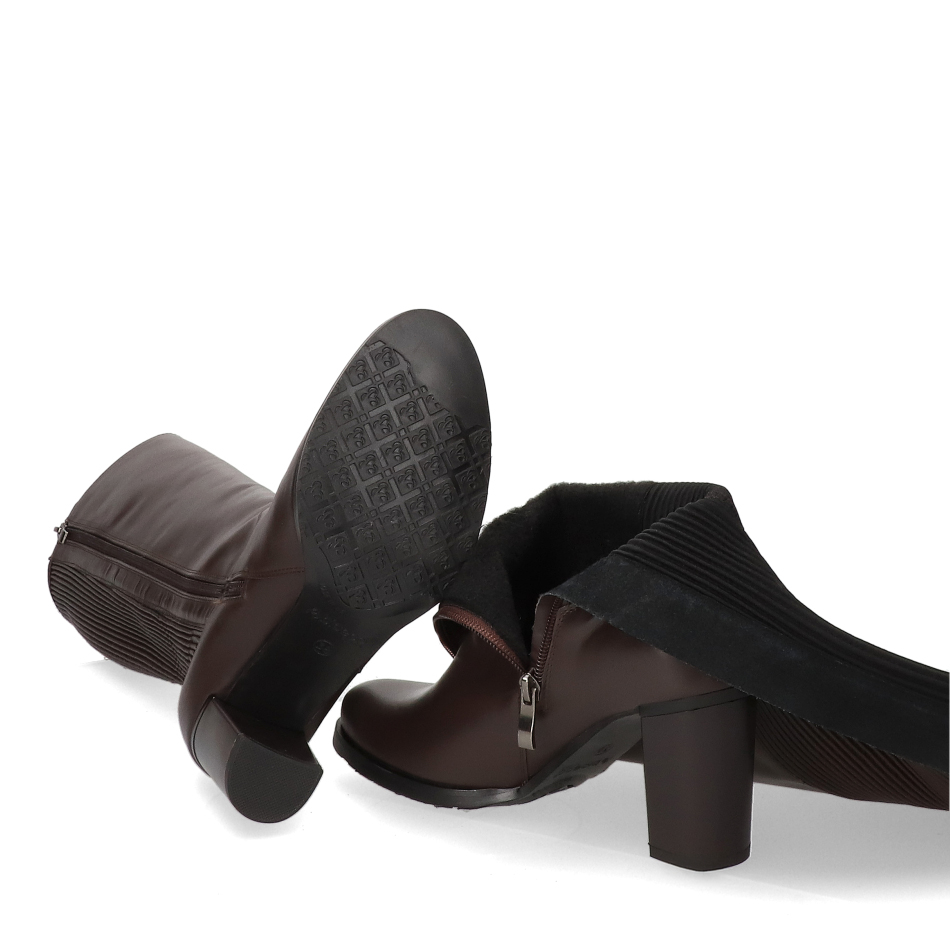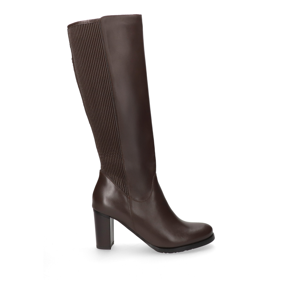 Eleganckie kozaki z licowej skóry w kolorze czekoladowym na stabilnym słupku – połączenie luksusu i komfortu