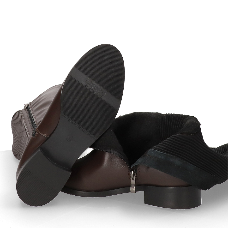 Brązowe kozaki wykonane z naturalnej skóry licowej. To klasyczne obuwie, które połącza styl, trwałość i komfort, spełniając oczekiwania nawet najbardziej wymagających klientów.