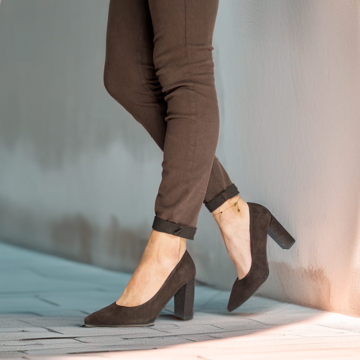 Eleganckie brązowe zamszowe czółenka – komfort, styl i jakość
