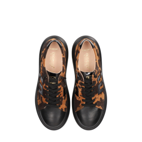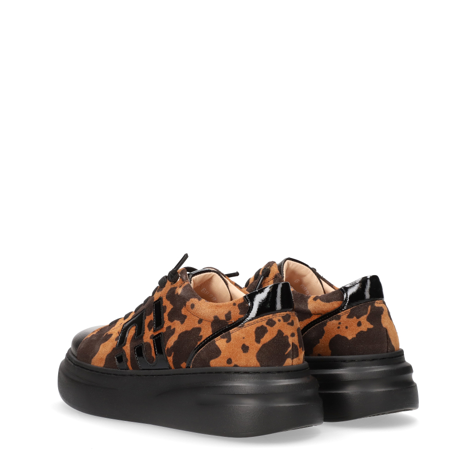 Modne Sneakersy na Platformie – Brązowo-Czarne Cętki i Akcenty Lakierowane