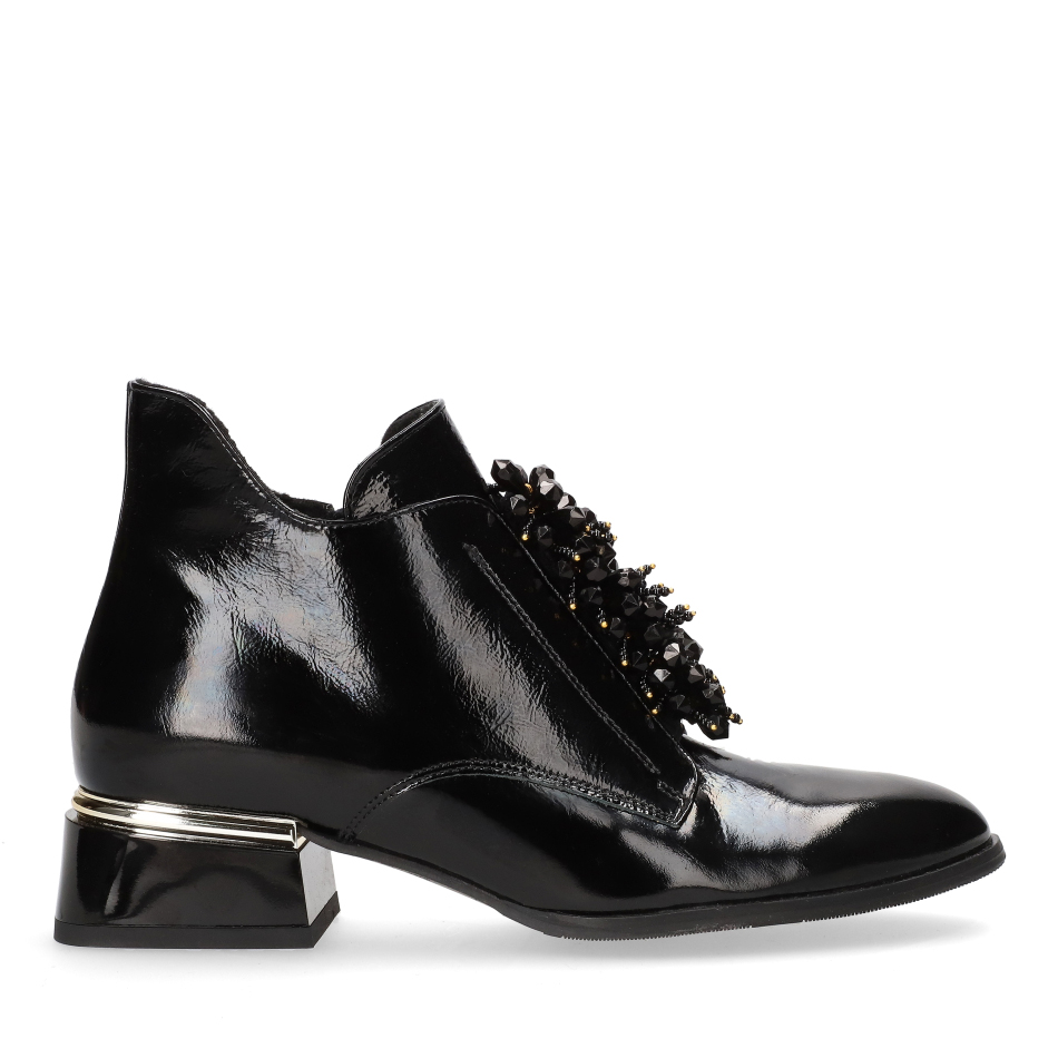 Styl i funkcjonalność: Klasyczny fason botków z ozdobnym obcasem.