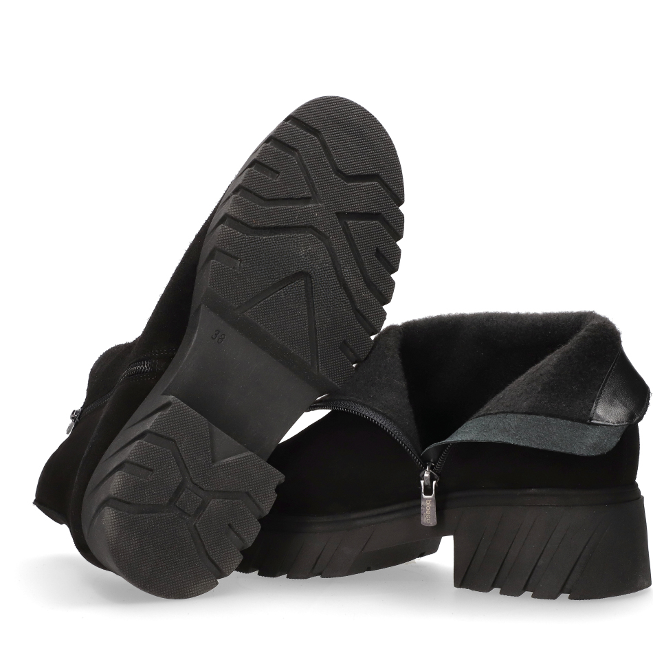 Czarne Botki Z Nubuku Na Masywnej Podeszwie – Komfort i Nowoczesny Look