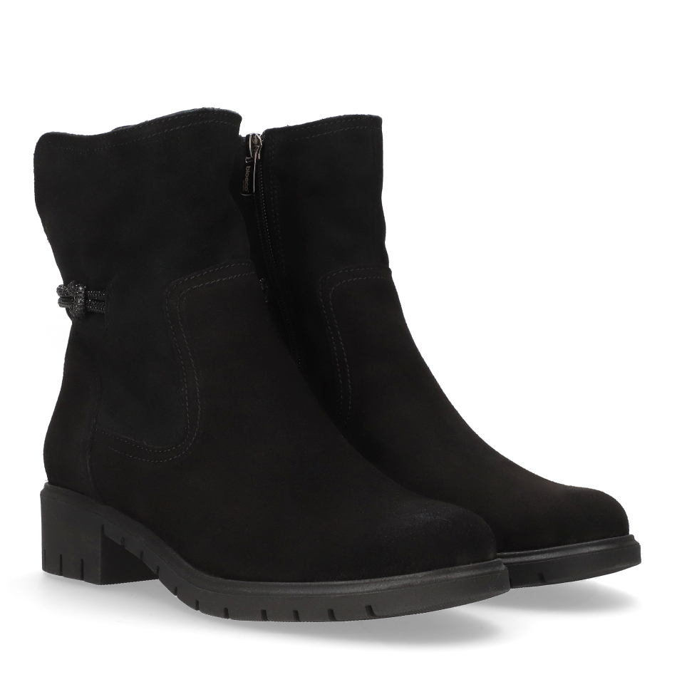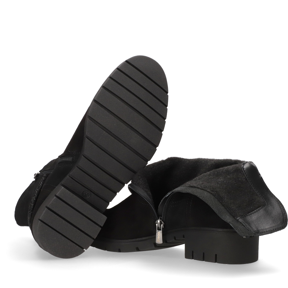 Czarne botki z weluru na traperowej podeszwie – komfort, styl i polska jakość