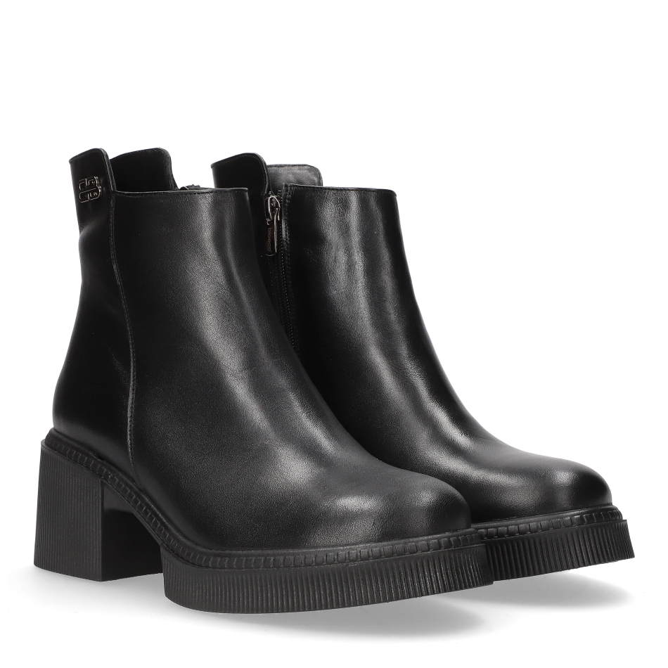 Eleganckie czarne botki z licowej skóry na obcasie typu klocek – styl, wygoda i polska jakość