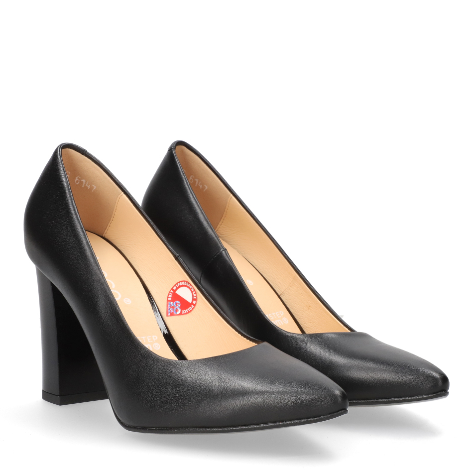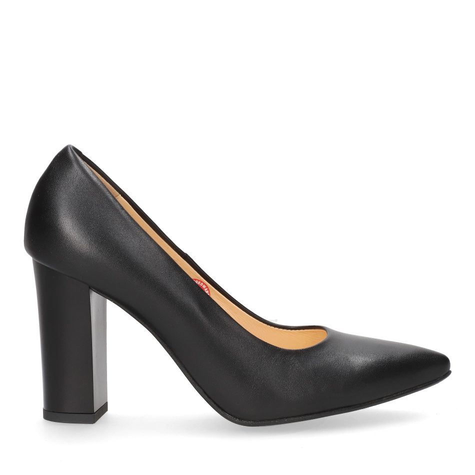 Styl i funkcjonalność: Stabilny 10 cm obcas typu słupek, skóra licowa w kolorze czarnym oraz elegancki nosek w szpic – idealne do stylizacji biznesowych i wieczorowych.