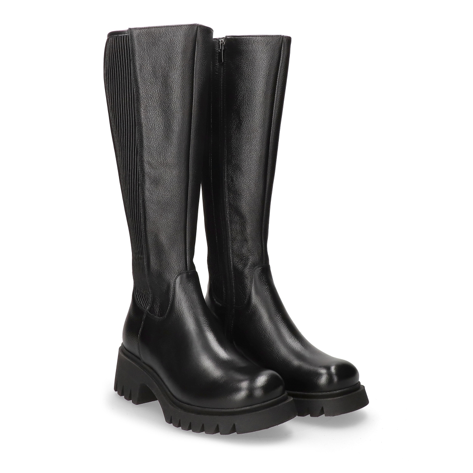 Te kozaki to wyrazista propozycja, która łączy modny, masywny fason z wysoką jakością i komfortem. Wykonane z gładkiej skóry licowej w uniwersalnym kolorze czarnym, są idealne dla osób ceniących miejski styl i wygodę.