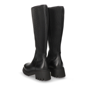 Materiał i Fason: Dolna część cholewki została wykonana z gładkiej skóry licowej. Kozaki charakteryzują się wysoką cholewką, której boczny panel jest uzupełniony elastycznym, prążkowanym materiałem, zapewniającym idealne dopasowanie do łydki.