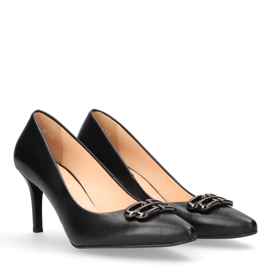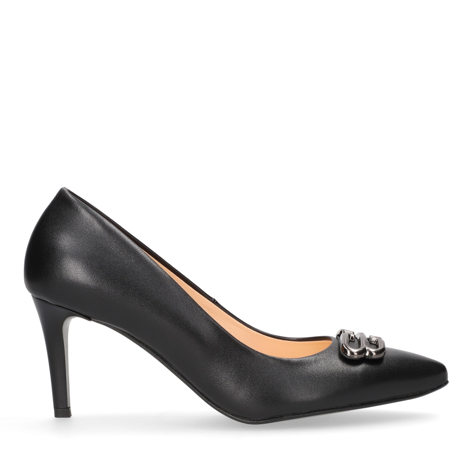 Te klasyczne czarne czółenka wykonane są z najwyższej jakości skóry licowej, łącząc minimalistyczną linię z subtelną ozdobą na nosku. Smukły obcas typu szpilka o wysokości 7 cm pięknie podkreśla sylwetkę, zapewniając stabilność podczas noszenia. Model został zaprojektowany i wyprodukowany w Polsce, z najwyższą starannością oraz z użyciem przebadanych, bezpiecznych materiałów.