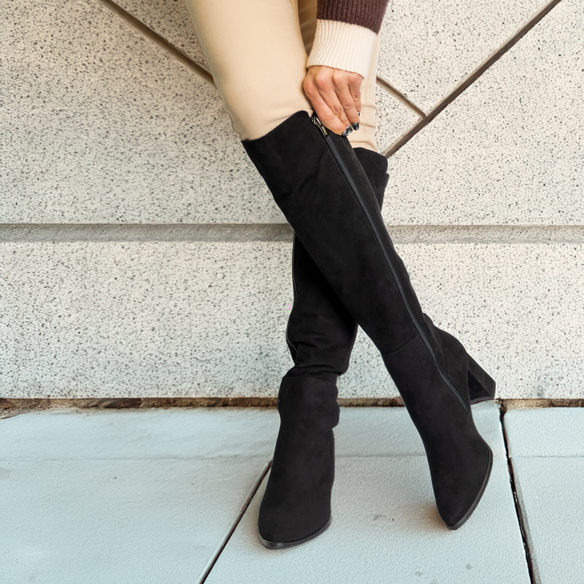 Odkryj kozaki, które łączą odważny styl z komfortem drugiej skóry. Te długie, czarne kozaki na stabilnym obcasie to absolutny must-have w Twojej jesienno-zimowej garderobie, idealne zarówno do casualowych stylizacji, jak i eleganckich wyjść.