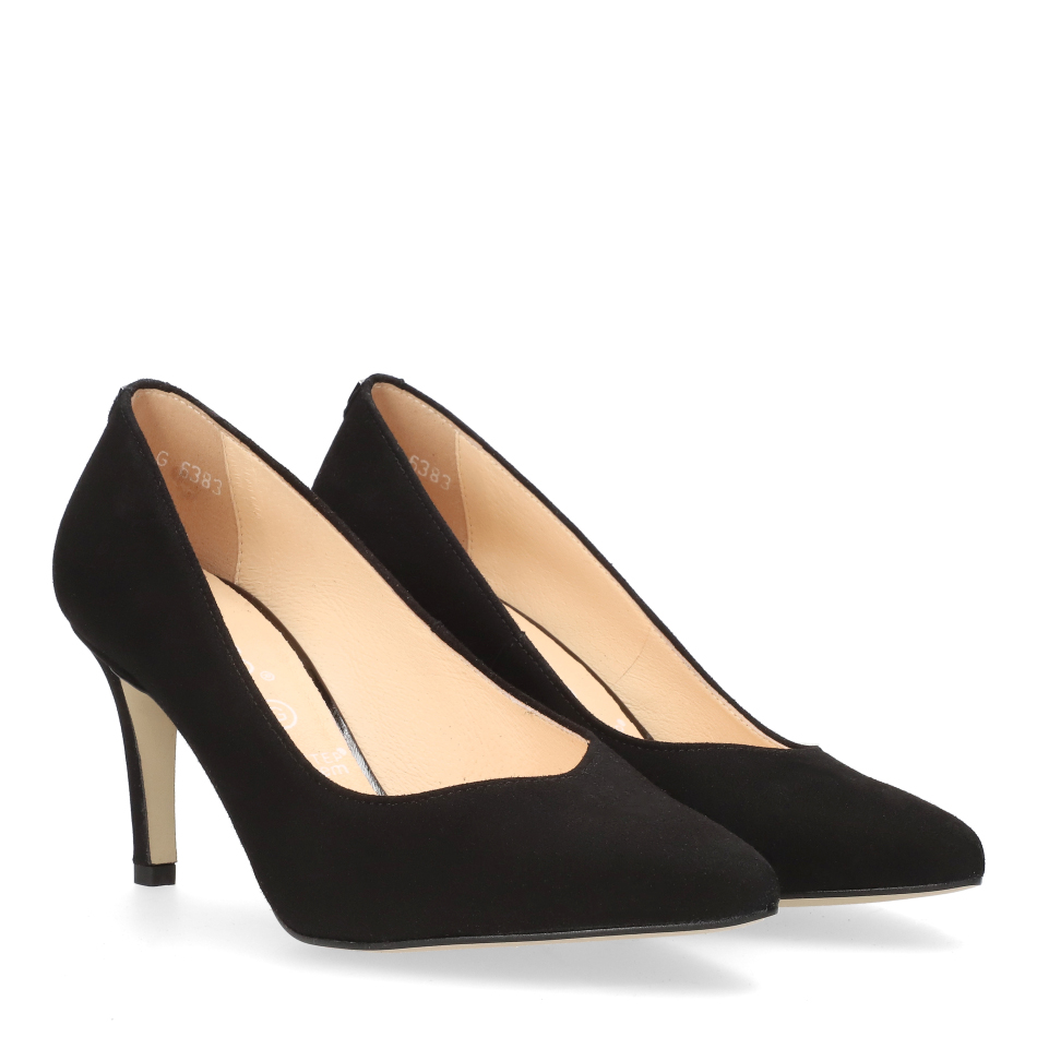 Eleganckie czarne szpilki z zamszu – komfort i styl każdego dnia