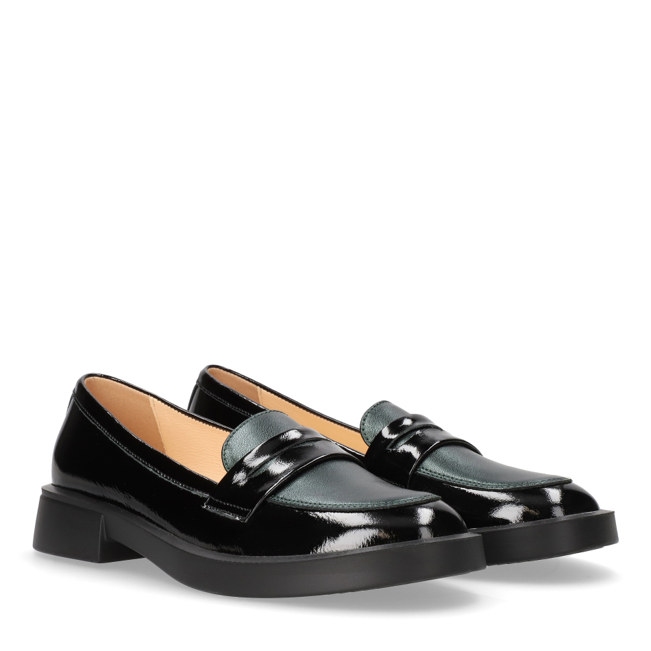 Te lakierowane mokasyny w intrygującym czarno-zielony zestawieniu kolorystycznym łączą klasyczną elegancję z nowoczesnymi rozwiązaniami, które zapewniają wyjątkowy komfort. Dzięki polskiej produkcji, wysokiej jakości materiałom i innowacyjnemu systemowi Soft Step, to obuwie, które sprawdzi się zarówno na co dzień, jak i na specjalne okazje.