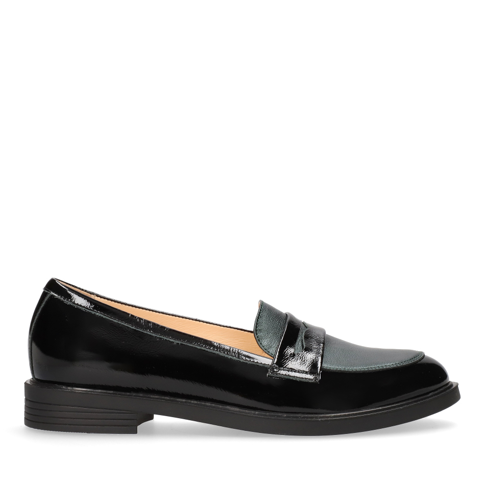 Eleganckie czarno-zielone mokasyny – komfort, styl i jakość