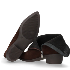 Klasyczny fason – czekoladowy welur połączony z obcasem typu klocek o wysokości 4,5 cm daje nie tylko modny wygląd, ale i wygodę noszenia.