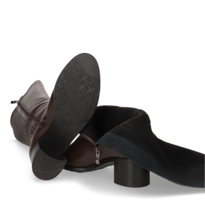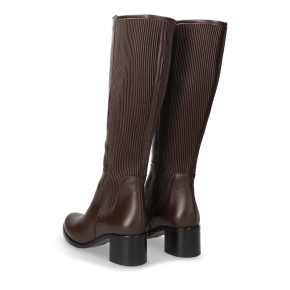 Te brązowe kozaki to kwintesencja elegancji połączonej z funkcjonalnością. Wykonane z gładkiej skóry licowej w pięknym odcieniu brązu, zostały zaprojektowane z myślą o maksymalnym komforcie i dopasowaniu. Kluczowym elementem jest prążkowana, elastyczna wstawka na całej długości cholewki, która idealnie przylega do łydki, gwarantując wygodę noszenia.