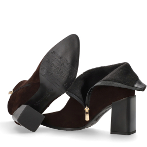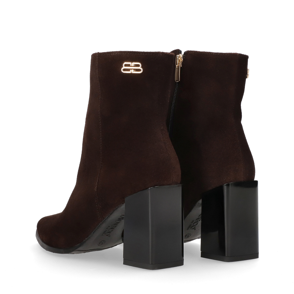 Eleganckie Botki – Czekoladowy Welur z Wysokim Obcasem
