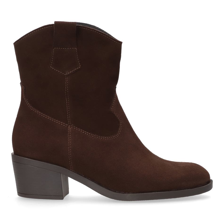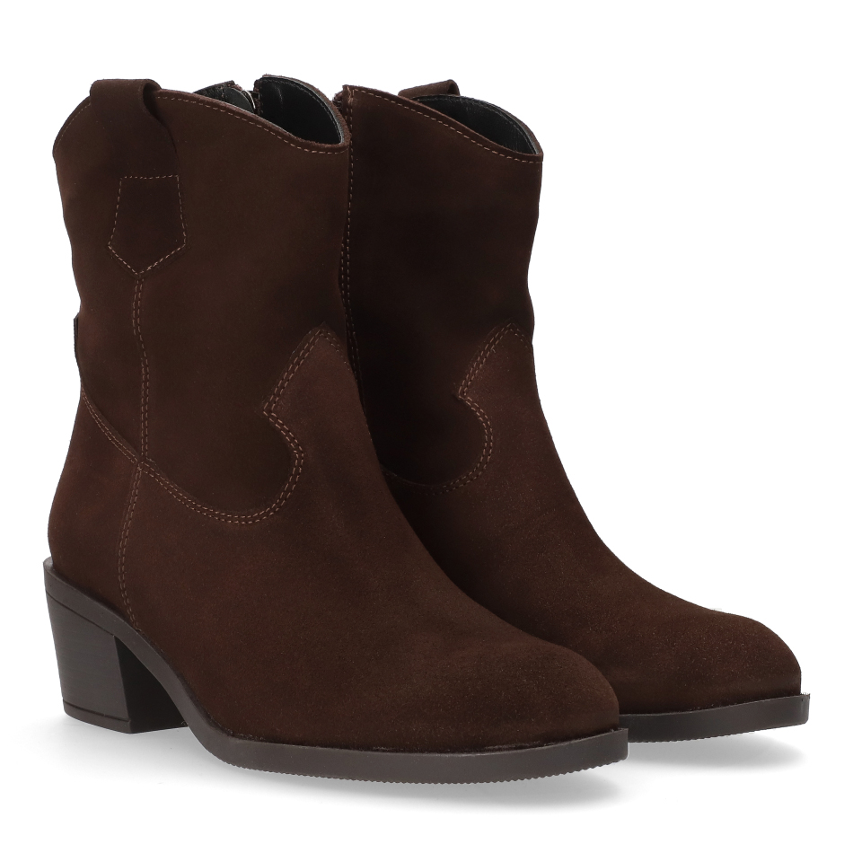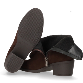 Klasyczny fason – brązowy welur połączony z obcasem typu klocek o wysokości 5,5 cm łączy modny wygląd i wygodę noszenia.