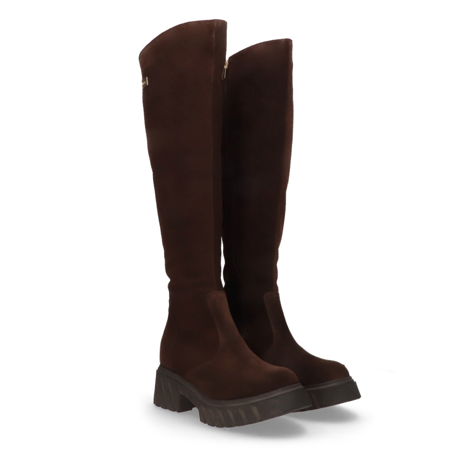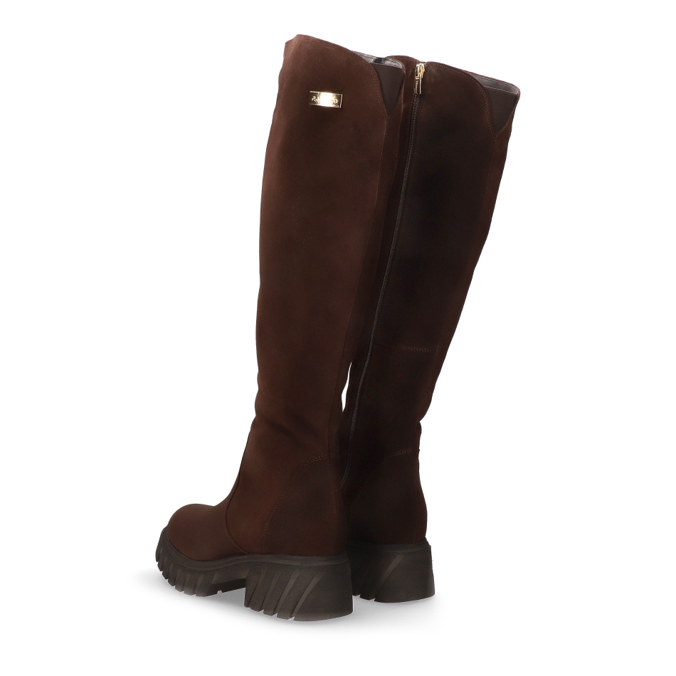 Styl i funkcjonalność: Stabilna, gruba traktorowa podeszwa typu platforma oraz ok. 5 cm podwyższenie dają pewny krok i świetną izolację od podłoża. Skóra licowa w kolorze czekoladowym i prosta, długa cholewka tworzą ponadczasowy, miejski look – pasujący zarówno do płaszcza, jak i do puchowej kurtki.