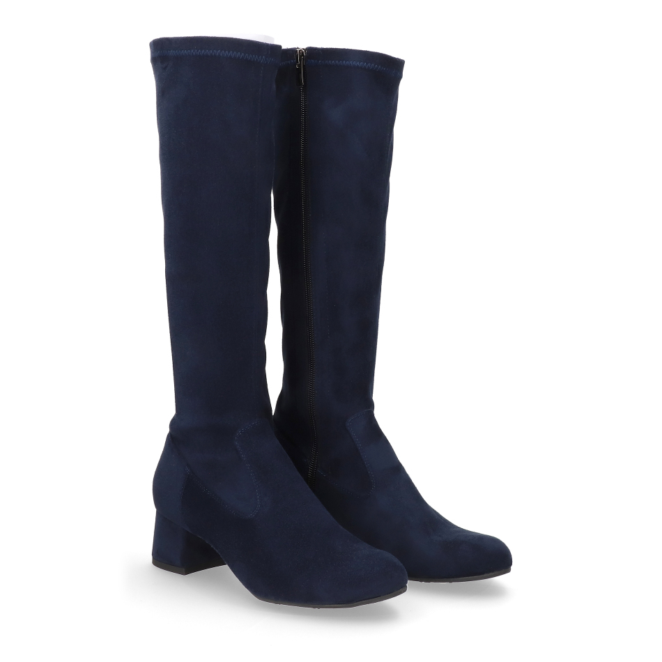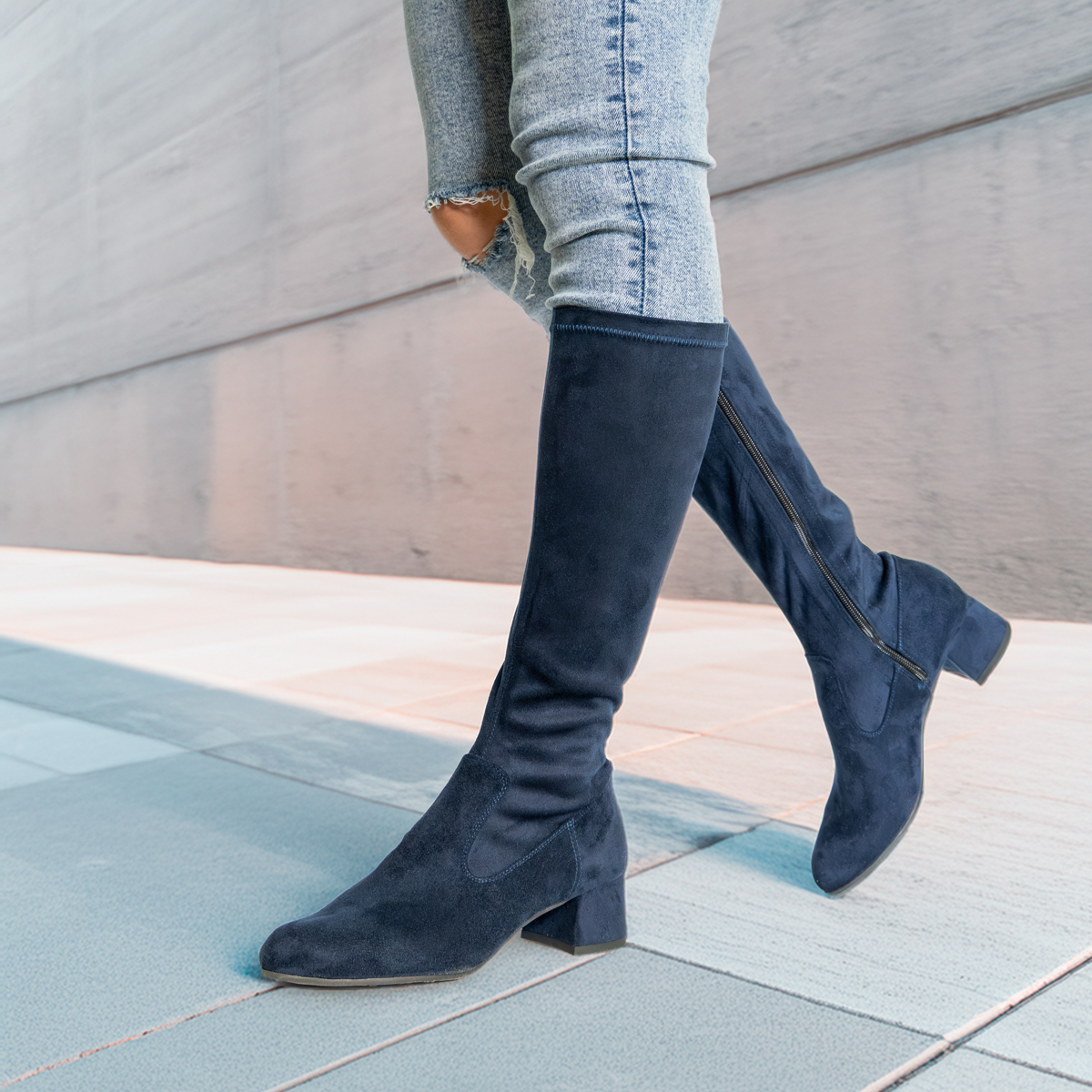 Styl i funkcjonalność: Stabilny 5 cm obcas typu klocek, cholewka ze zamszu w kolorze granatowym , idealny do eleganckich i casualowych stylizacji.