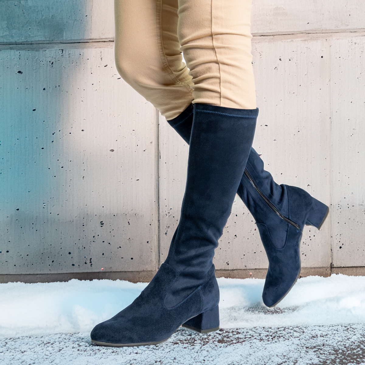 Te zamszowe kozaki za kolano w kolorze granatowym łączą modny fason z nowoczesnymi rozwiązaniami, które zapewniają wyjątkowy komfort. Dzięki polskiej produkcji, wysokiej jakości materiałom i innowacyjnemu systemowi Soft Step, to obuwie, które sprawdzi się zarówno na co dzień, jak i na specjalne okazje.