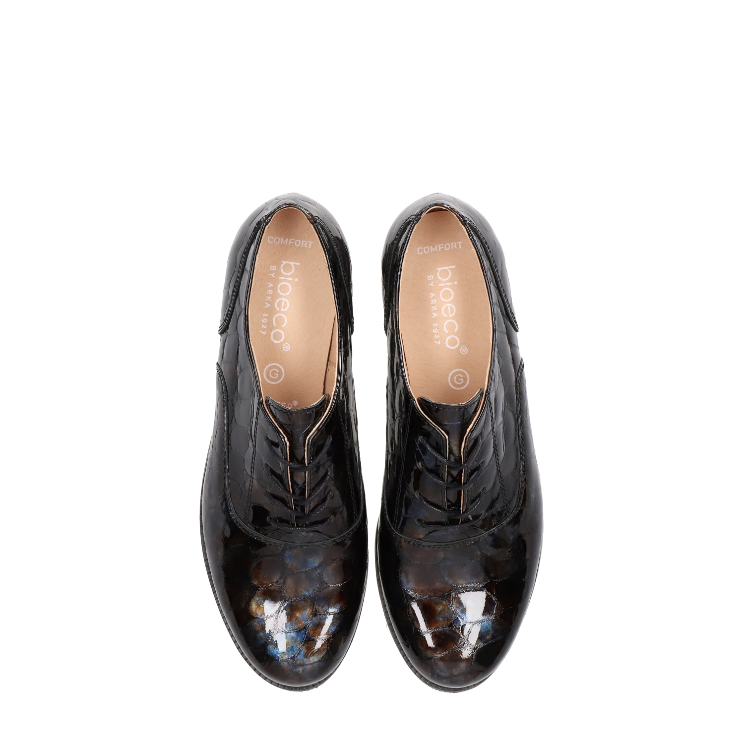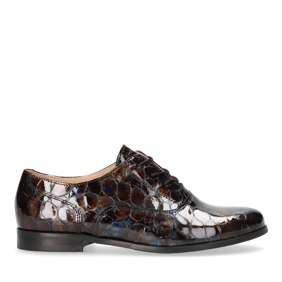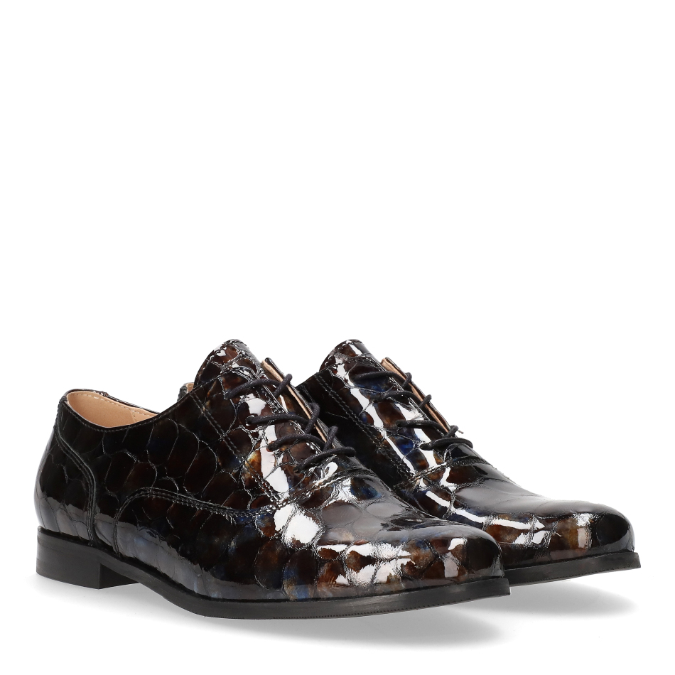 Klasyczne Półbuty sznurowane – Lakierowana Skóra z Efektem Multikolorowej Łuski