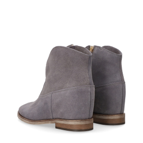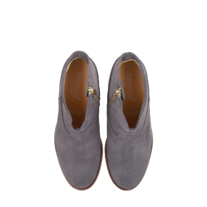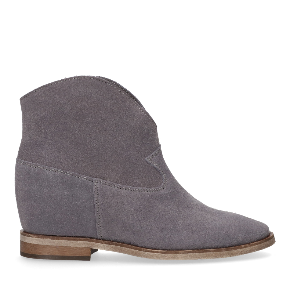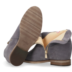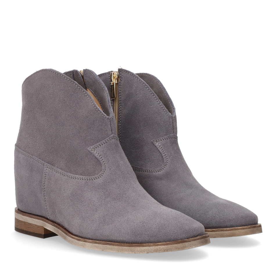 Te stylowe botki typu sztyblety łączą wygodę z modnym, luźnym stylem inspirowanym kowbojkami. Cholewka wykonana jest z miękkiego szarego zamszu , co nadaje im matowego, eleganckiego wykończenia. Wnętrze botków wyścielone jest w całości skórą, co zapewnia stopom doskonałą cyrkulację powietrza, podnosi komfort noszenia i trwałość obuwia.