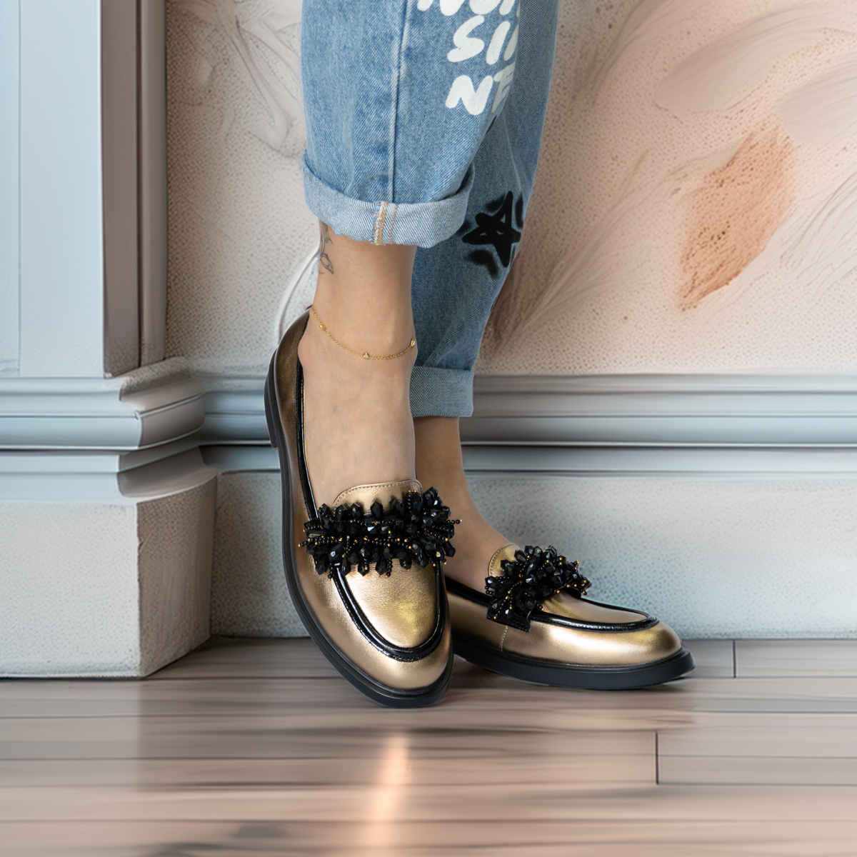 Eleganckie złoto-czarne mokasyny – komfort, styl i jakość